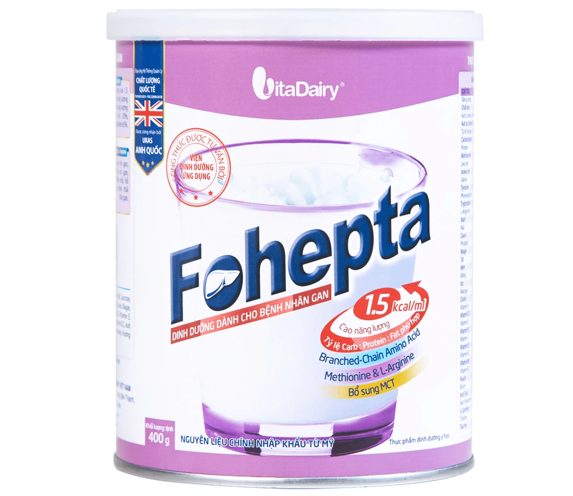 Fohepta là sản phẩm dinh dưỡng chuyên biệt dành cho bệnh nhân gan của công ty Cổ phần sữa VitaDairy Việt Nam. Sản phẩm sử dụng nguồn nguyên liệu chất lượng được nhập khẩu từ Mỹ với công thức tiên tiến được tư vấn bởi các chuyên gia tại Viện Dinh dưỡng Quốc gia, phù hợp các khuyến cáo dinh dưỡng quốc tế, Fohepta hiệu quả với thể trạng và nhu cầu dinh dưỡng của người bệnh gan, người suy giảm chức năng gan.