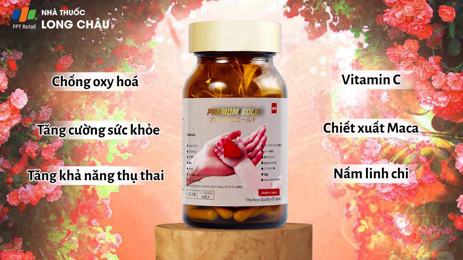 Premom Gold là thực phẩm bảo vệ sức khỏe được kết hợp từ các loại vitamin, khoáng chất cùng nhiều thành phần chống oxy hóa khác giúp tăng cường khả năng sinh sản cho nữ giới. Sản phẩm thích hợp dùng cho phụ nữ trưởng thành, đang trong giai đoạn chuẩn bị mang thai.